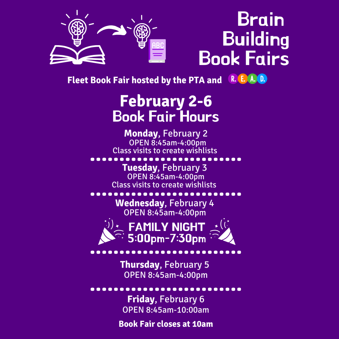 Join us February 2nd-6th for the Fleet book fair presented by R.E.A.D Book Nook. You can find information about...